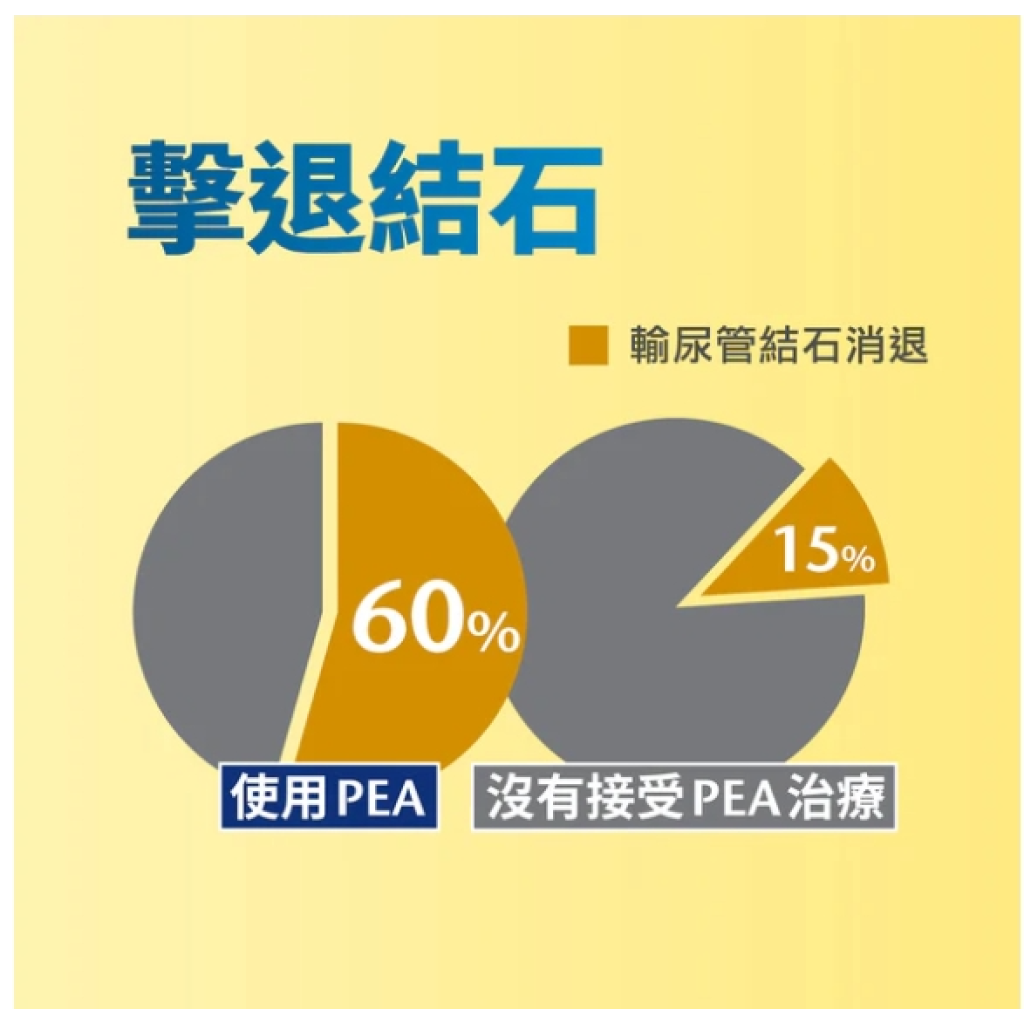 主要活性成分PEA (Palmitoylethanolamide) 是一種天然脂肪酸,是一種「天然抗炎止痛劑」。能夠透過ALIA機制減低⤵肥大細胞(Mast Cells)在腎臟、膀胱和尿道的活躍度,避免組織被持續破壞及纖維化。