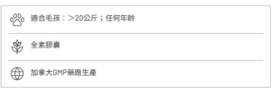 timeplus+ 犬隻NMN命活修護關節配方特配高純度葡萄糖胺,軟骨素和有機硫,有助關節維持健康功能,緩解關節相關痛楚。配合TimePlus+ 99.9%高純度NMN配方,增強毛孩活力健康,提升命力。