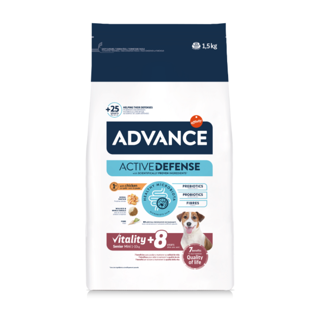 ADVANCE日常護理小型老犬糧特別適合8歲以上小型犬的營養需求。它是易於消化的食品,並同時增強狗隻天然屏障和防禦能力。