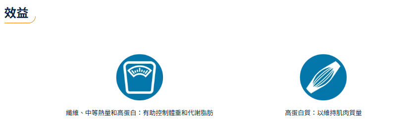纖維、中等熱量和高蛋白:有助控制體重和代謝脂肪
