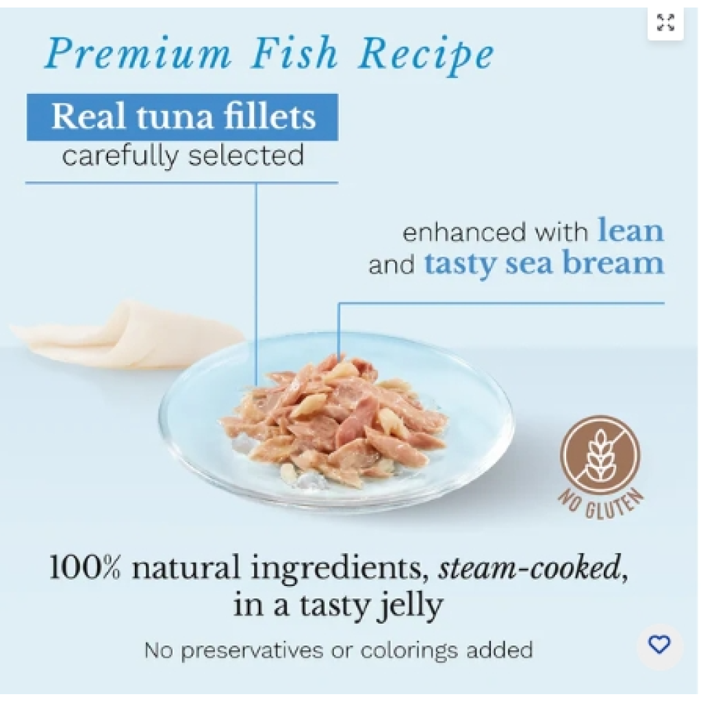 此配方採用真正的吞拿魚為基礎,配以肉質鮮甜的海鯛,啫哩狀的質地特別適合偏好細緻海味與較紮實口感的貓貓,帶來無法抗拒的絕佳風味。