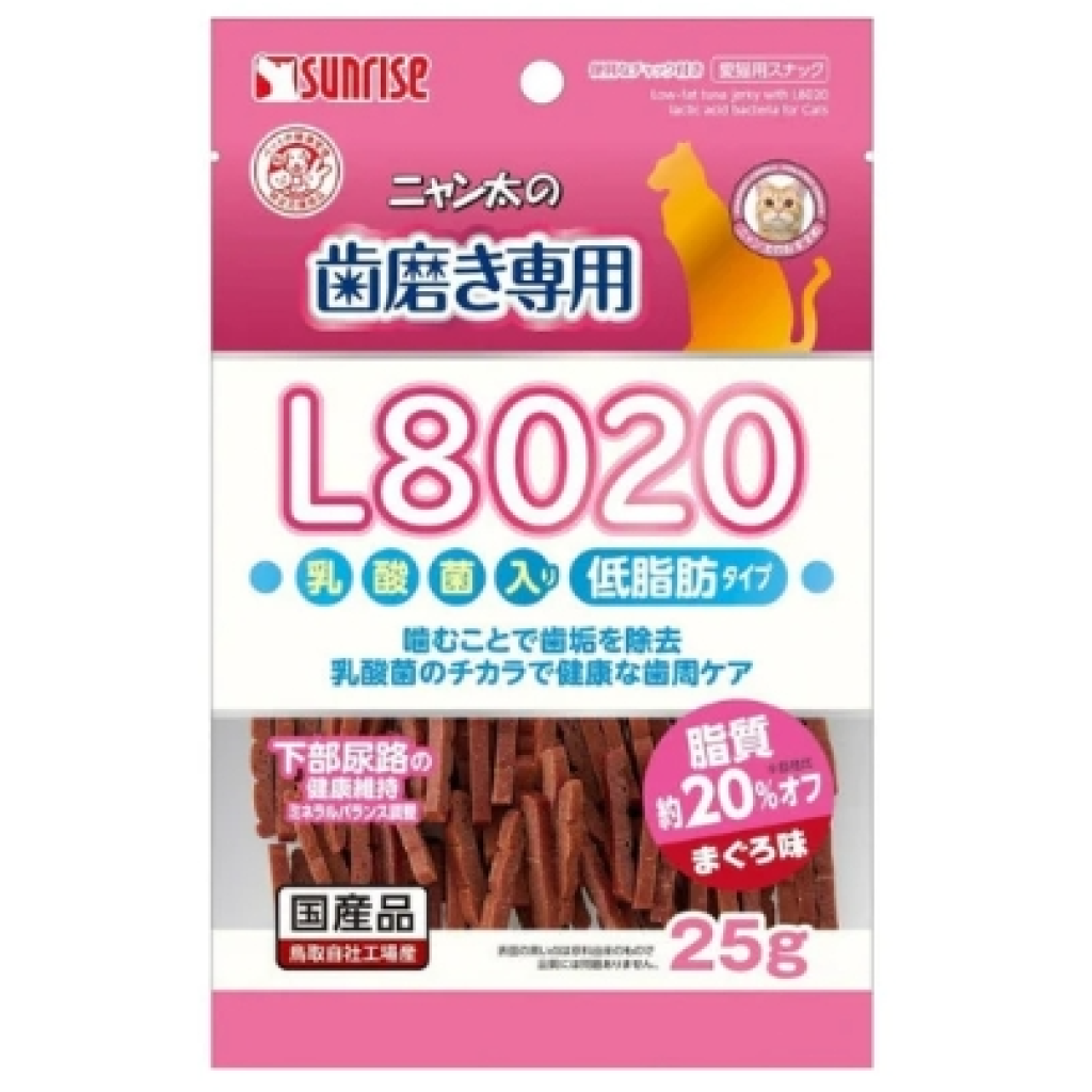 這是一種由金槍魚製成的低脂肉乾,猫很喜歡。 咀嚼它有助於去除牙菌斑,L8020乳酸菌的力量有助於保持牙齦健康。