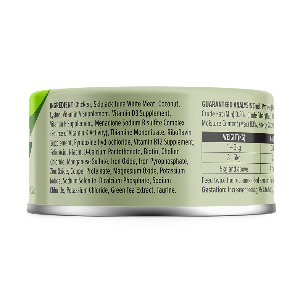 雞肉,白吞拿魚,椰子,離胺酸,維生素 A 補充劑,維生素