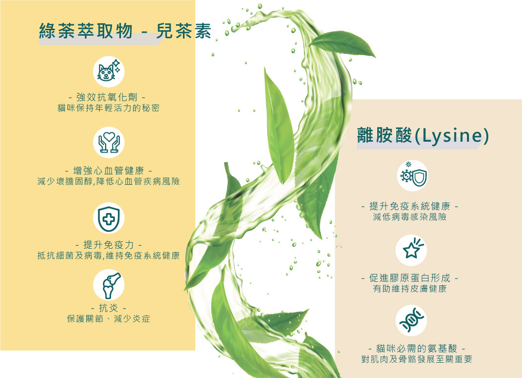 磷酸氫鈣,氯化鈉,氯化鉀,綠茶提取物,牛磺酸。