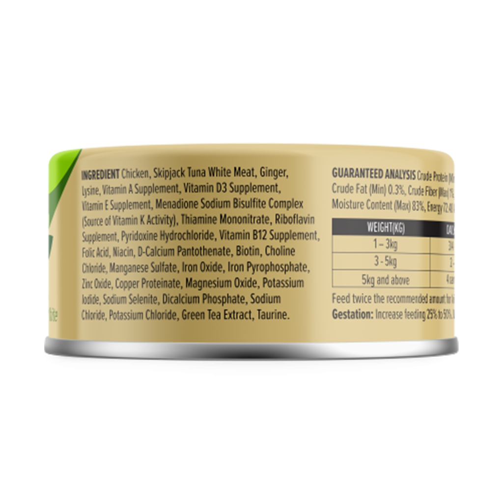雞肉,白吞拿魚,生薑,離胺酸,維生素 A 補充劑,維生素
