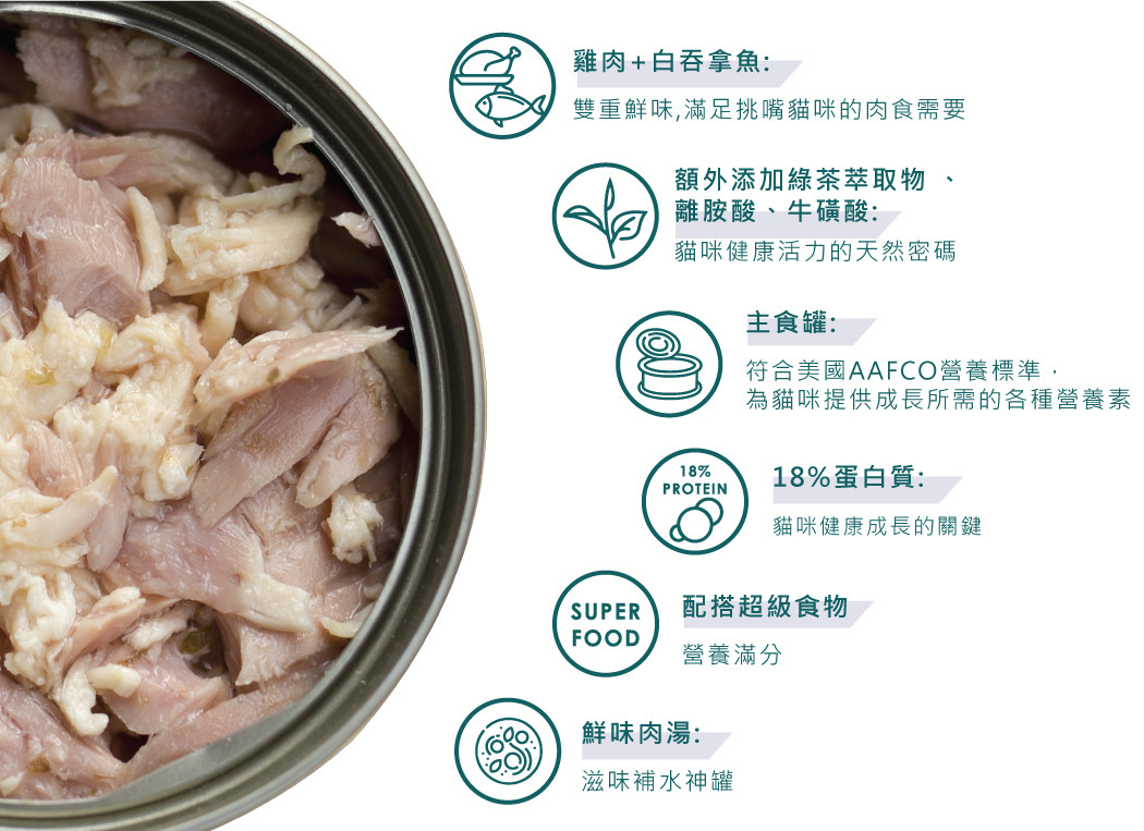雞肉,白吞拿魚,小紅莓,離胺酸,維生素 A 補充劑,維生素