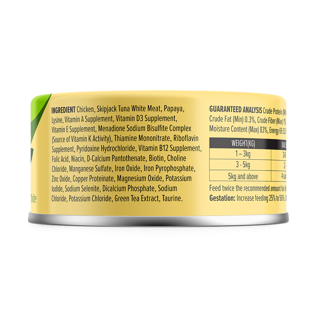 雞肉,白吞拿魚,木瓜,離胺酸,維生素 A 補充劑,維生素