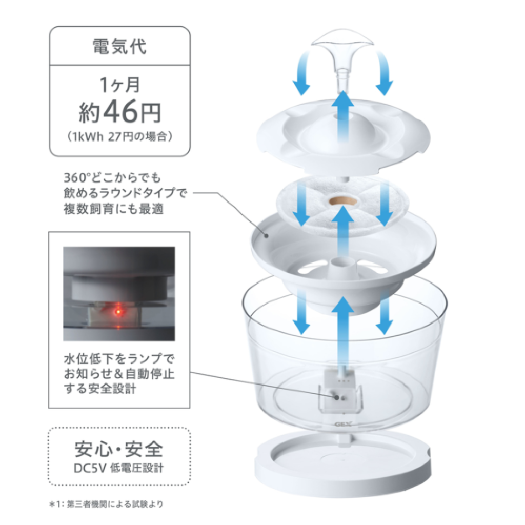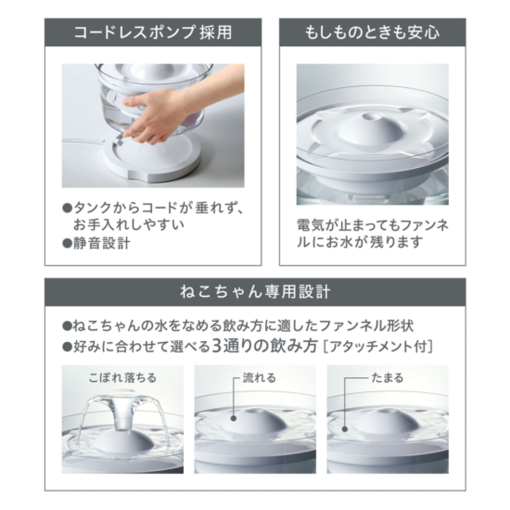 二代升級版外觀更像玻璃透明,使用静音低能水泵,安全省電。設有低水位自動報警提醒