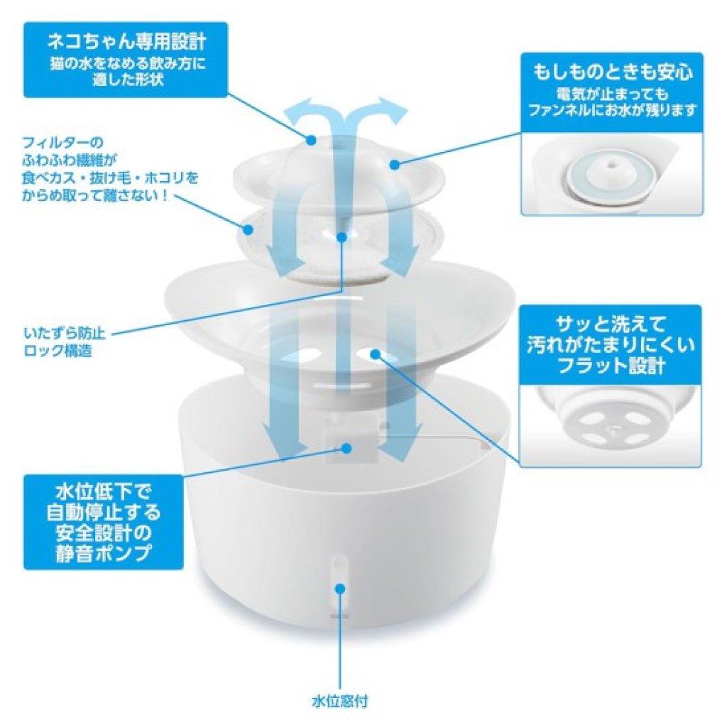 • 無懼突然斷電,水盆固定留水設計,保證貓貓飲水需求