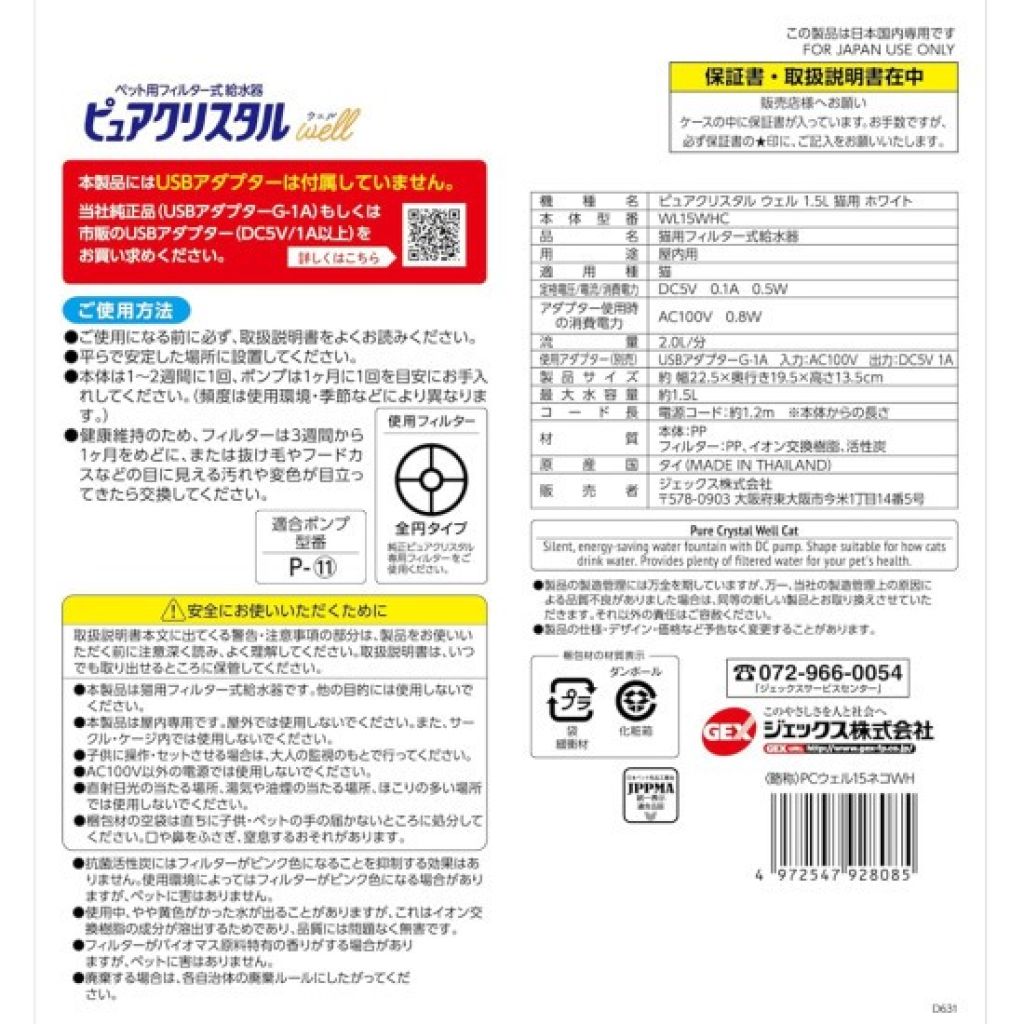 GEX well 貓用靜音飲水機 (白色) 1.5L (USB電源)