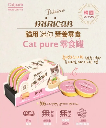 Cat Pure Minican是一款迷你罐零食,讓你可以隨時隨地餵養你心愛的貓咪