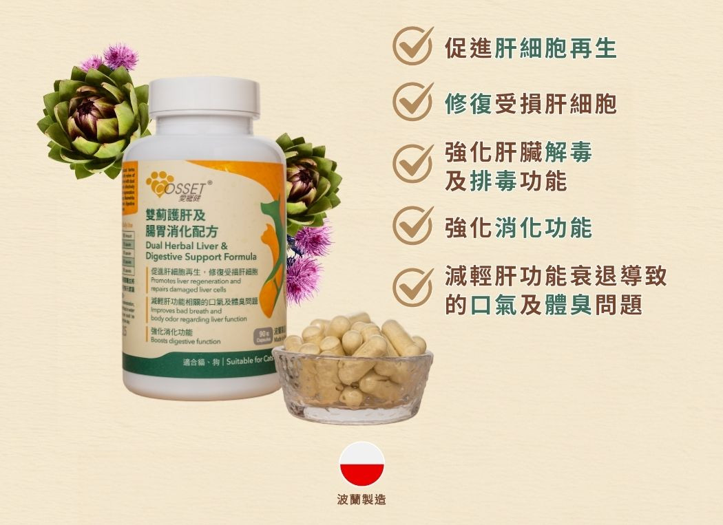 肝臟是毛孩消化系統的重要器官之一,負責代謝和分解營養、把毒素排出體外、製造膽汁、儲存微量元素及產生凝血功能。肝臟的功能多樣,對維持貓狗身體機能正常運作,有著關鍵的作用,所以為貓貓護肝、狗狗護肝對毛孩整體健康亦十分重要。