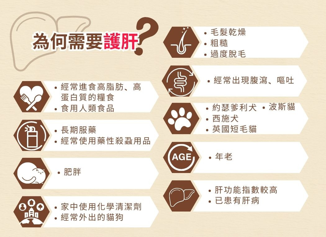 年齡:老年貓狗的肝功能會逐漸衰退,增加貓狗護肝的需要
