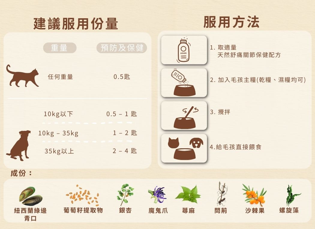 狗狗和貓貓關節一旦出現問題,便需要長時間護理。部分嚴重的疾病,例如貓關節炎以至是狗關節炎,更會伴隨毛孩終生,無法完全治癒。除此之外,只能透過藥物和日常護理幫助控制病情,減少出現貓貓、狗狗腳無力等病症的機會。因此,在日常生活中,為狗狗以及貓貓關節保健是幫助愛寵維持健康、每天盡情跑跳的關鍵。
