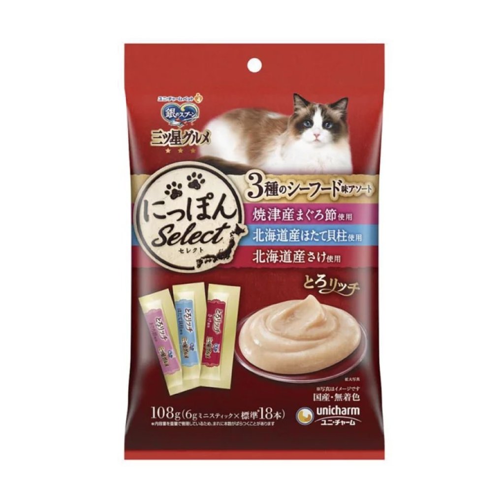 Unicharm|吞拿魚﹑扇貝,三文魚肉醬6g X 18本 3種海鮮口味拼盤