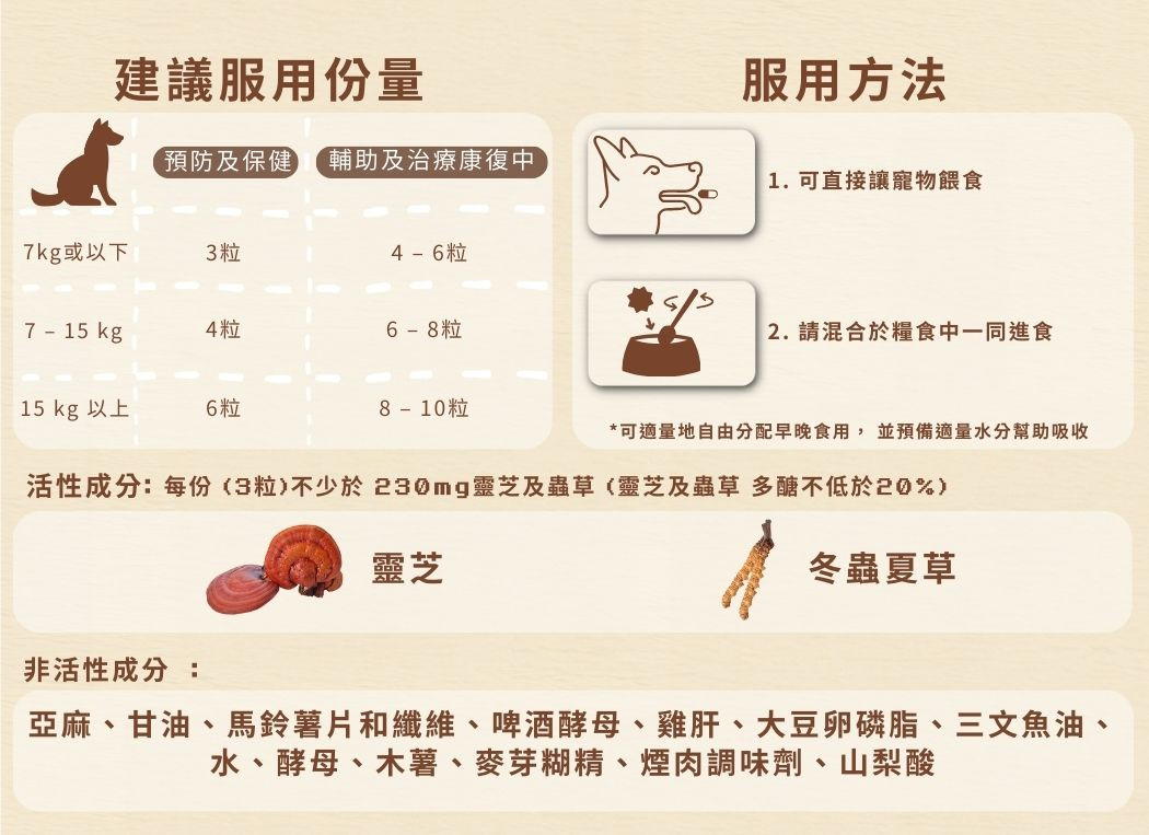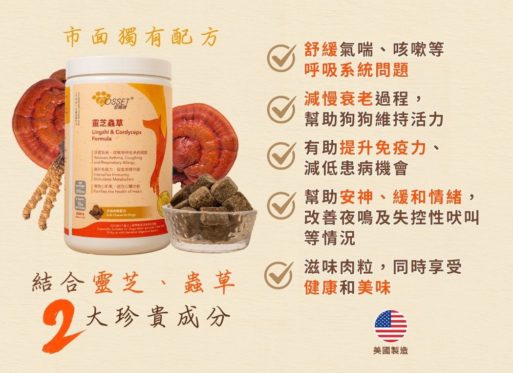 產品特點 —為甚麼你應該選擇愛寵健靈芝蟲草犬用蟲草肉粒配方?