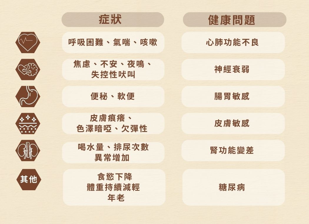 *預防勝於治療,當出現上述病癥,嚴重時可能導致不可逆的傷害。建議發現問題時,立刻諮詢您的獸醫師,並給予最佳的治療計畫。