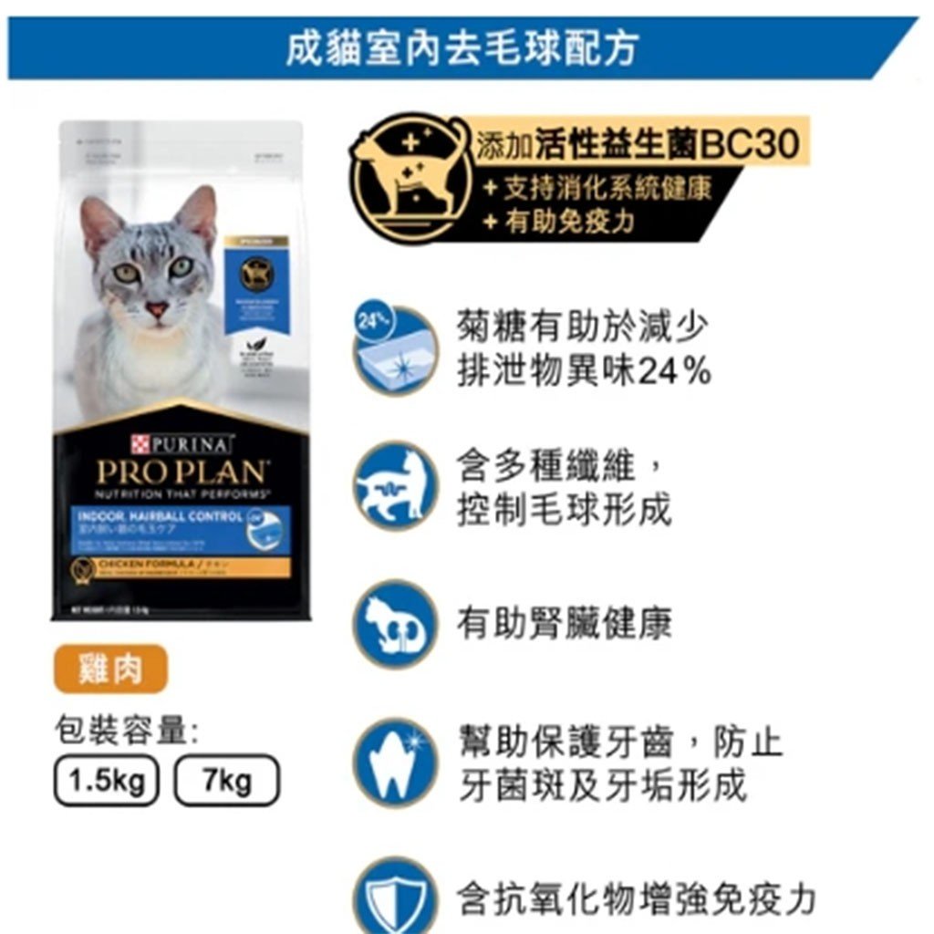 PURINA® PRO PLAN® 成貓室內去毛球配方 (雞肉)