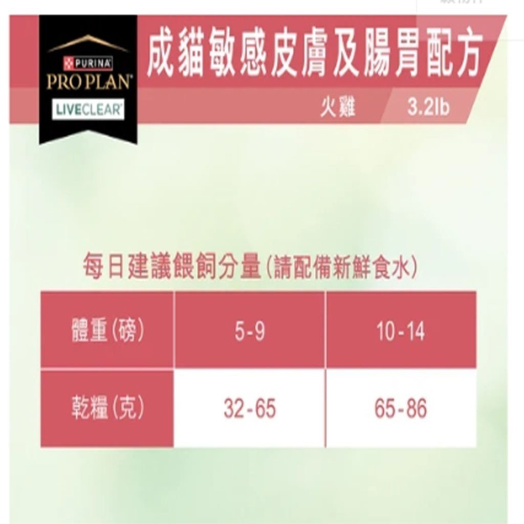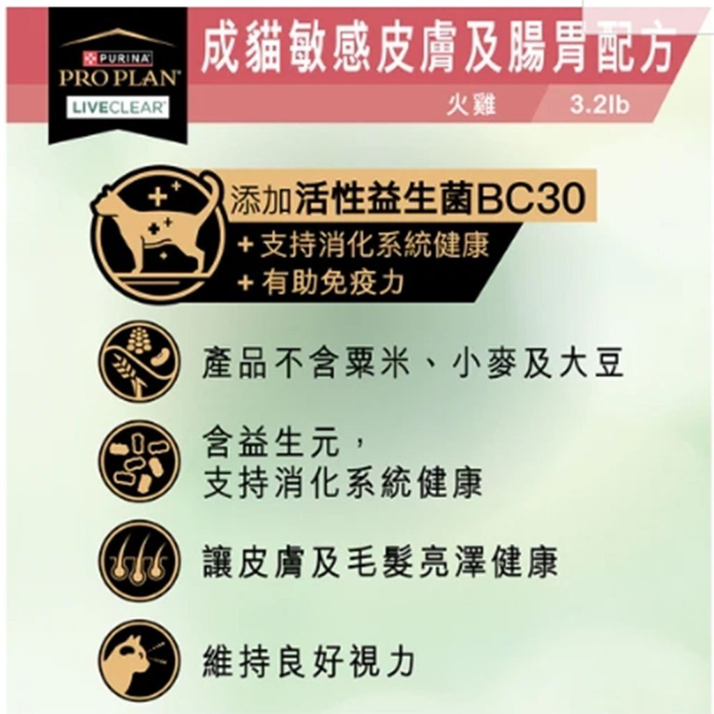 PURINA® PRO PLAN® 舒敏系列™ 成貓敏感皮膚及腸胃配方 (火雞)