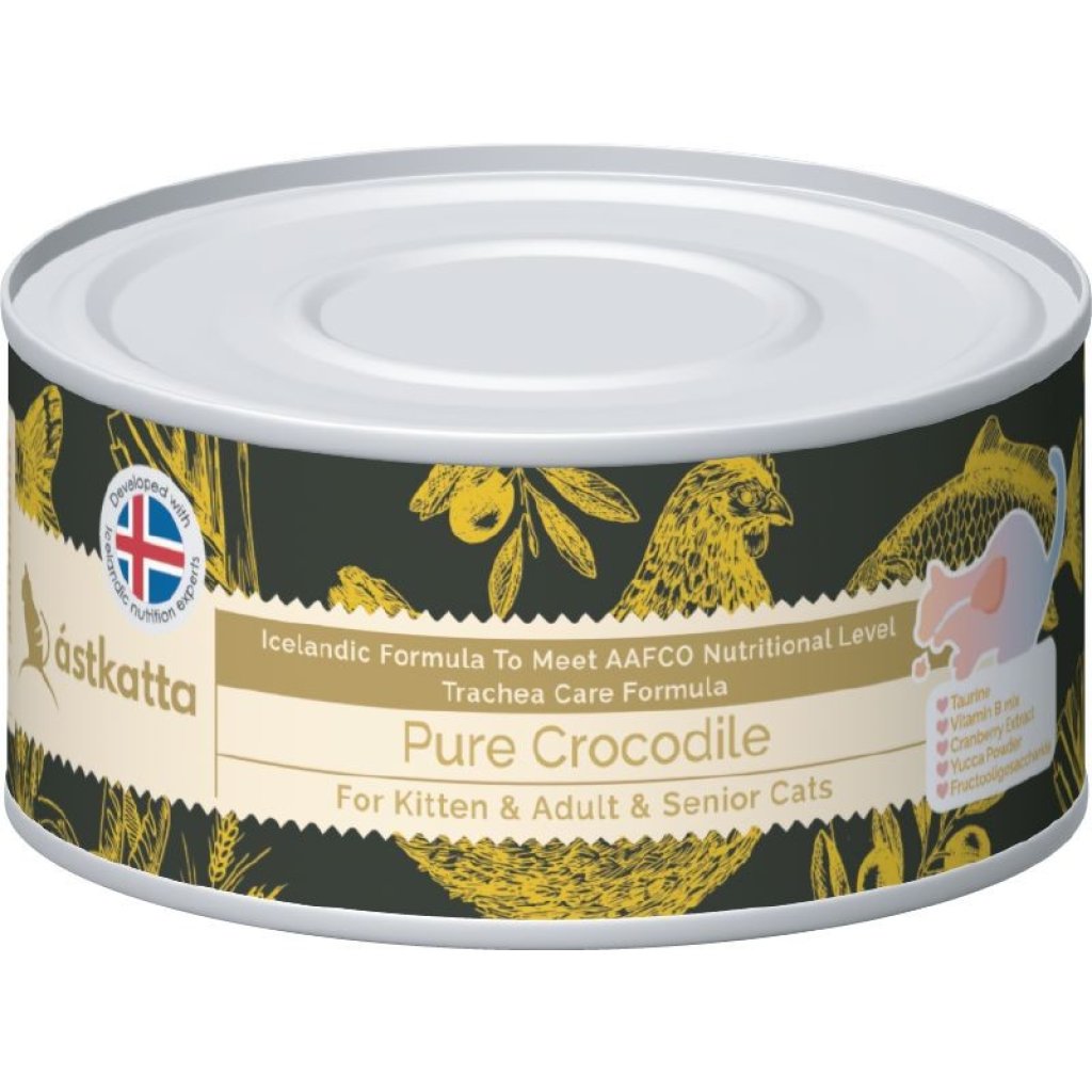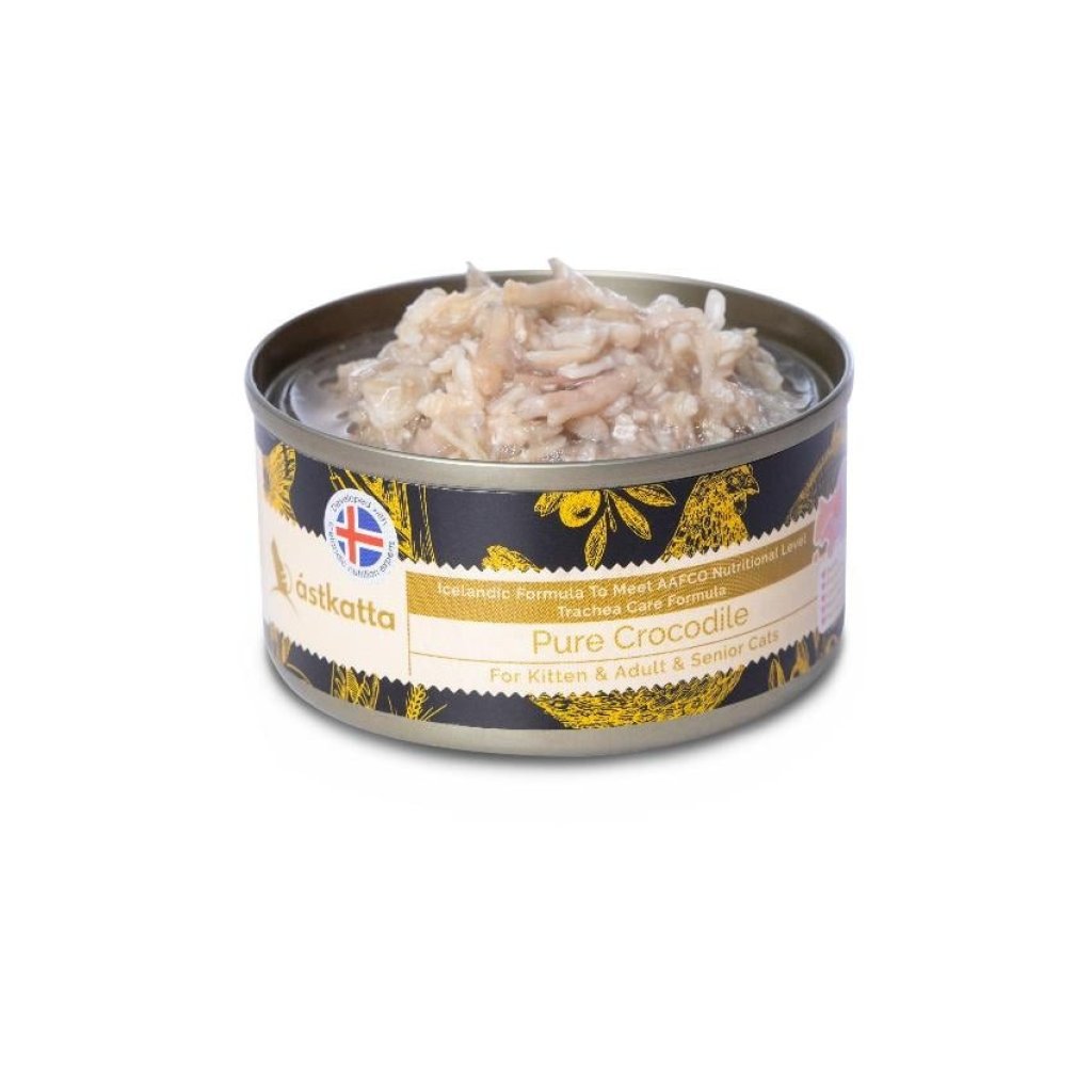 Astkatta 無膠主食貓罐頭(肉絲) 純鱷魚(氣管保養) (全貓) 80g (黑)