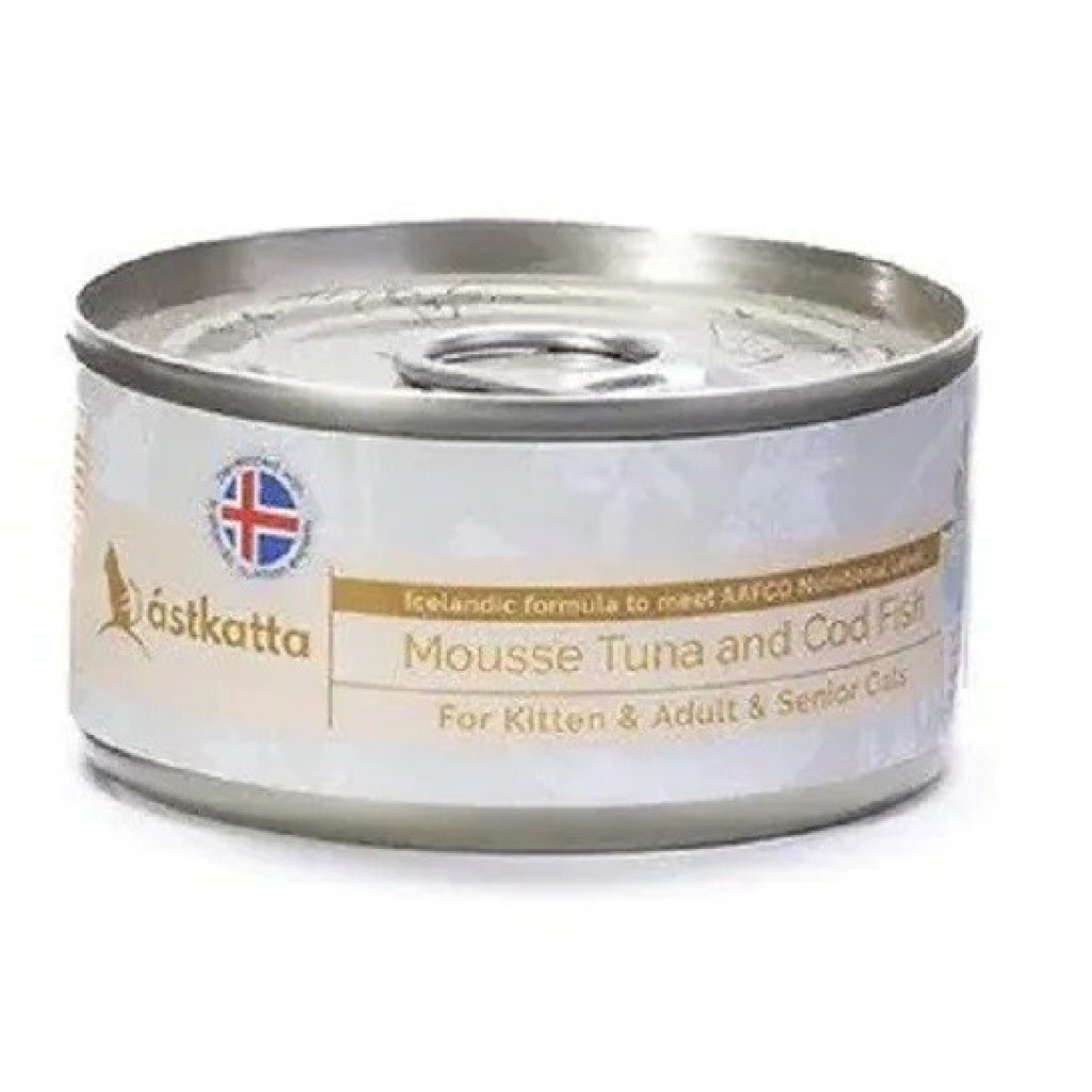 主頁 Astkatta 無膠主食貓罐頭(慕絲) 吞拿魚鱈魚 (全貓) 80g (淺藍)