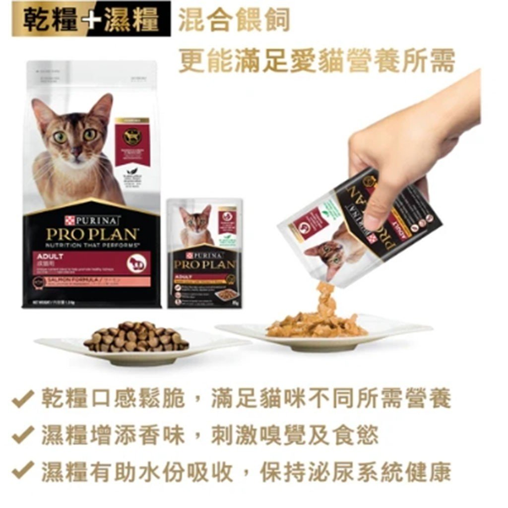 全新貓濕糧能配合乾糧混合餵食,提供美味可口的優質營養,滿足成貓的健康需要。